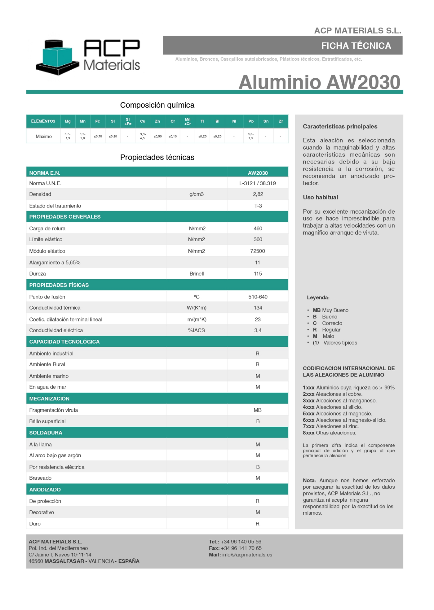 Esta aleación es seleccionada cuando la maquinabilidad y altas características mecánicas son necesarias debido a su baja resistencia a la corrosión, se recomienda un anodizado protector.