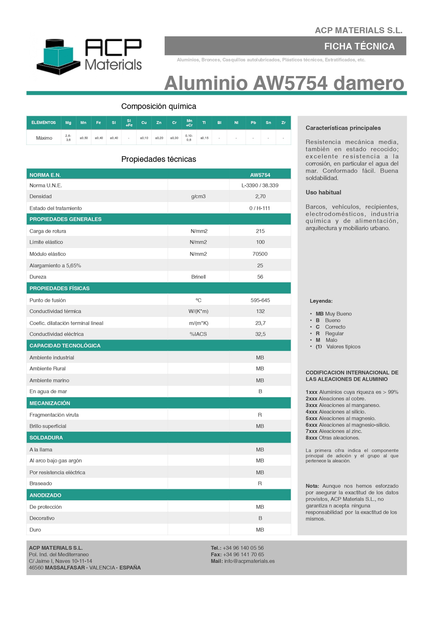 Resistencia mecánica media, también en estado recocido; excelente resistencia a la corrosión, en particular el agua del mar. Conformado fácil. Buena soldabilidad.