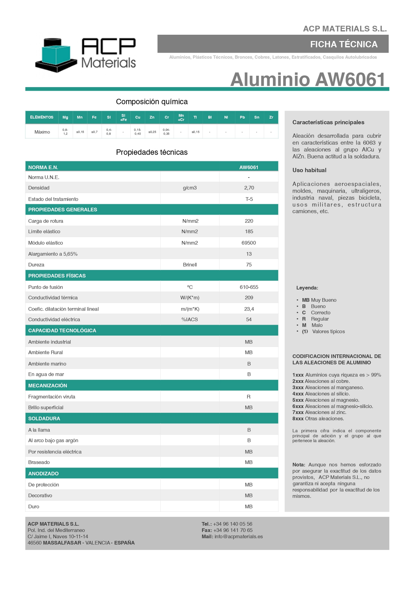 Aleación desarrollada para cubrir en características entre la 6063 y las aleaciones al grupo AlCu y AlZn. Buena actitud a la soldadura.