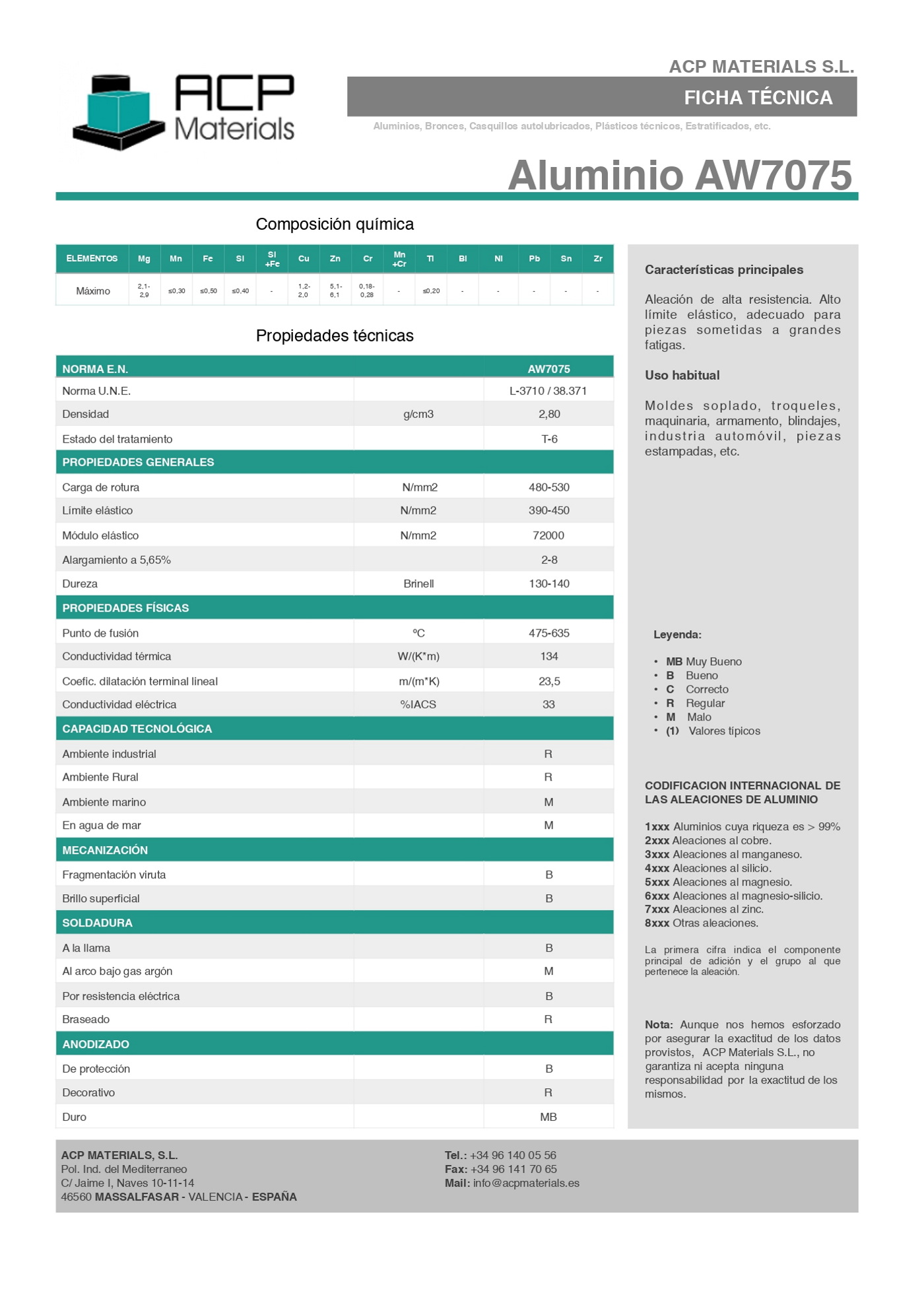 Aleación de alta resistencia. Alto límite elástico, adecuado para piezas sometidas a grandes fatigas.
