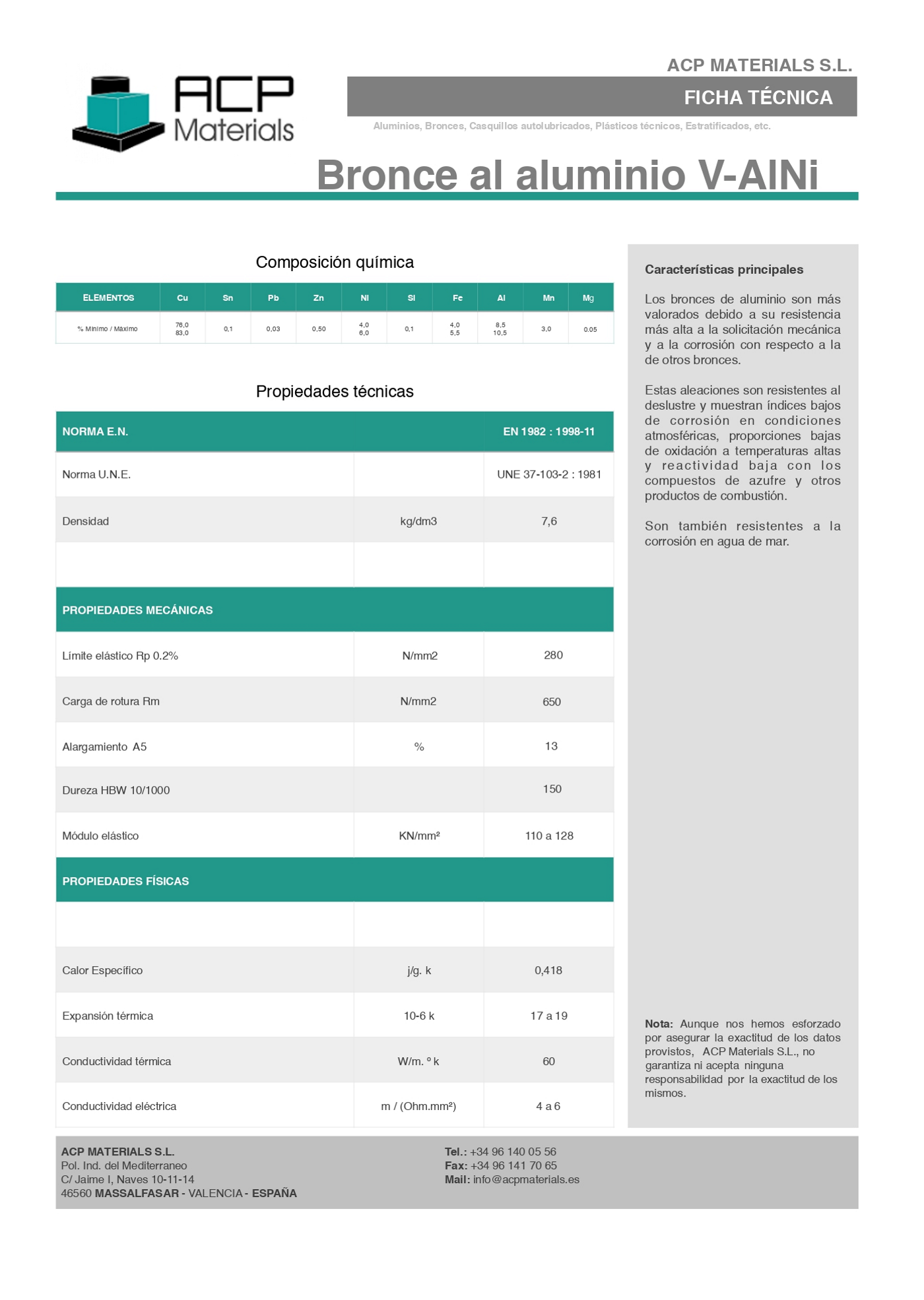 Los bronces de aluminio son más valorados debido a su resistencia más alta a la solicitación mecánica y a la corrosión con respecto a la de otros bronces.