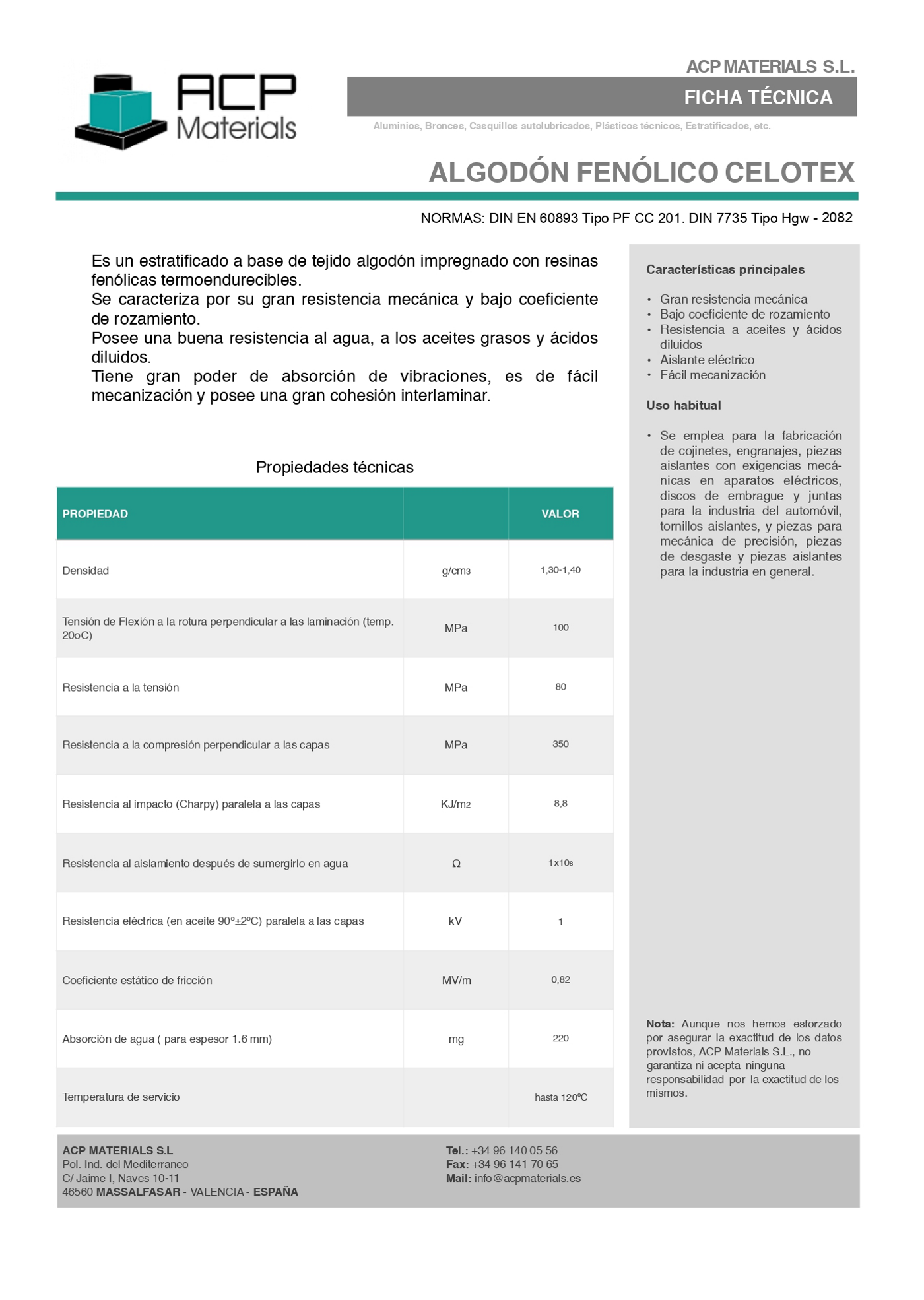 El Celotex, es un laminado fabricado a base de tejido algodón de malla extrafina y super-extrafina impregnado con resina fenólica. Se caracteriza por su gran resistencia mecánica y bajo peso específico.