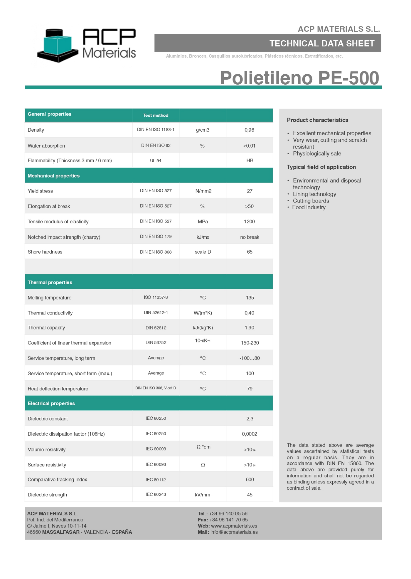 Polietileno PE-500, Polietileno de Alto Peso Molecular.